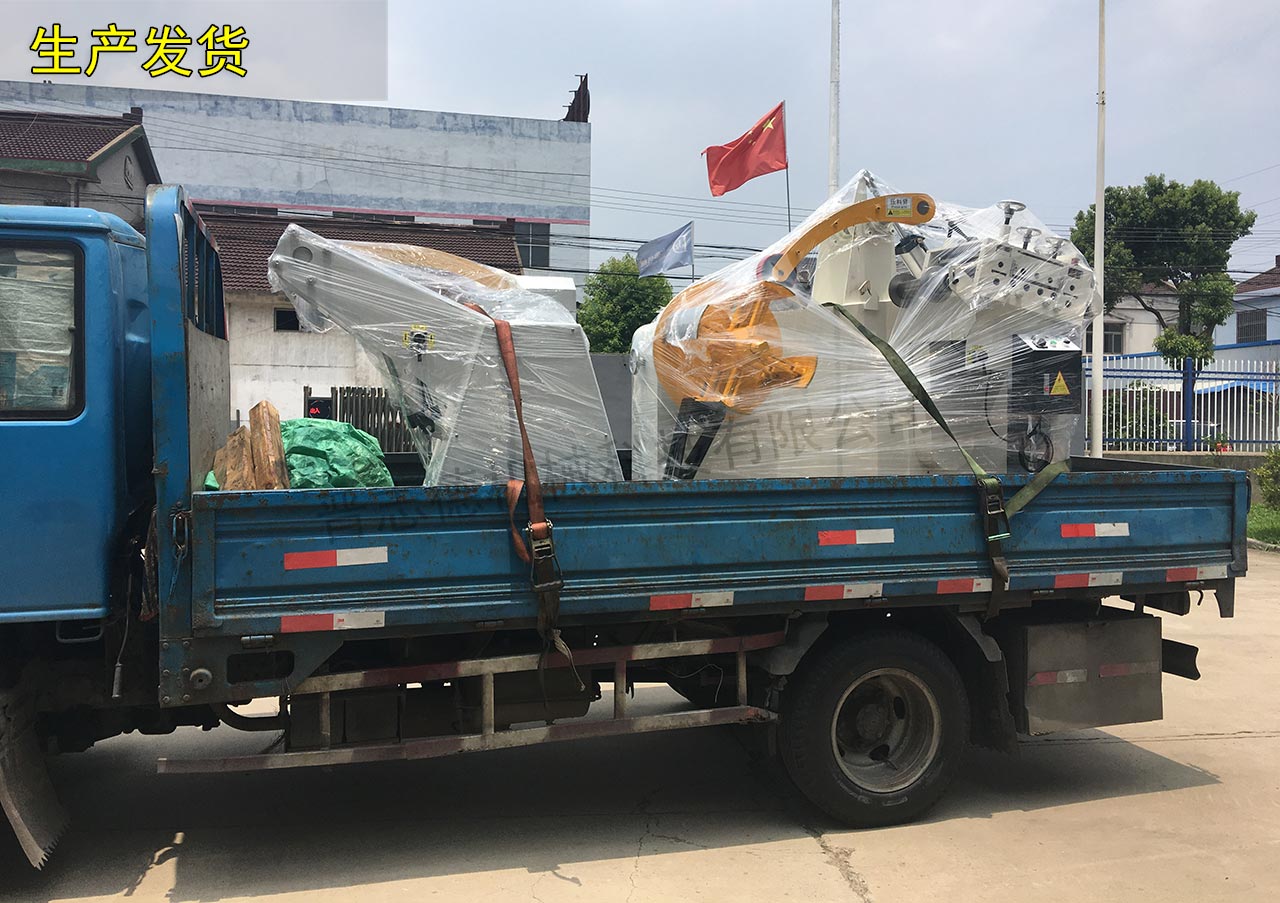而在車間現場,員工們在各自的崗位上辛勤苦干,忙得似乎不管“窗外事”,組裝調試、叉車運輸、行車吊裝,一臺臺組裝好的各類沖床自動送料設備擺放在發貨區甚是壯觀。