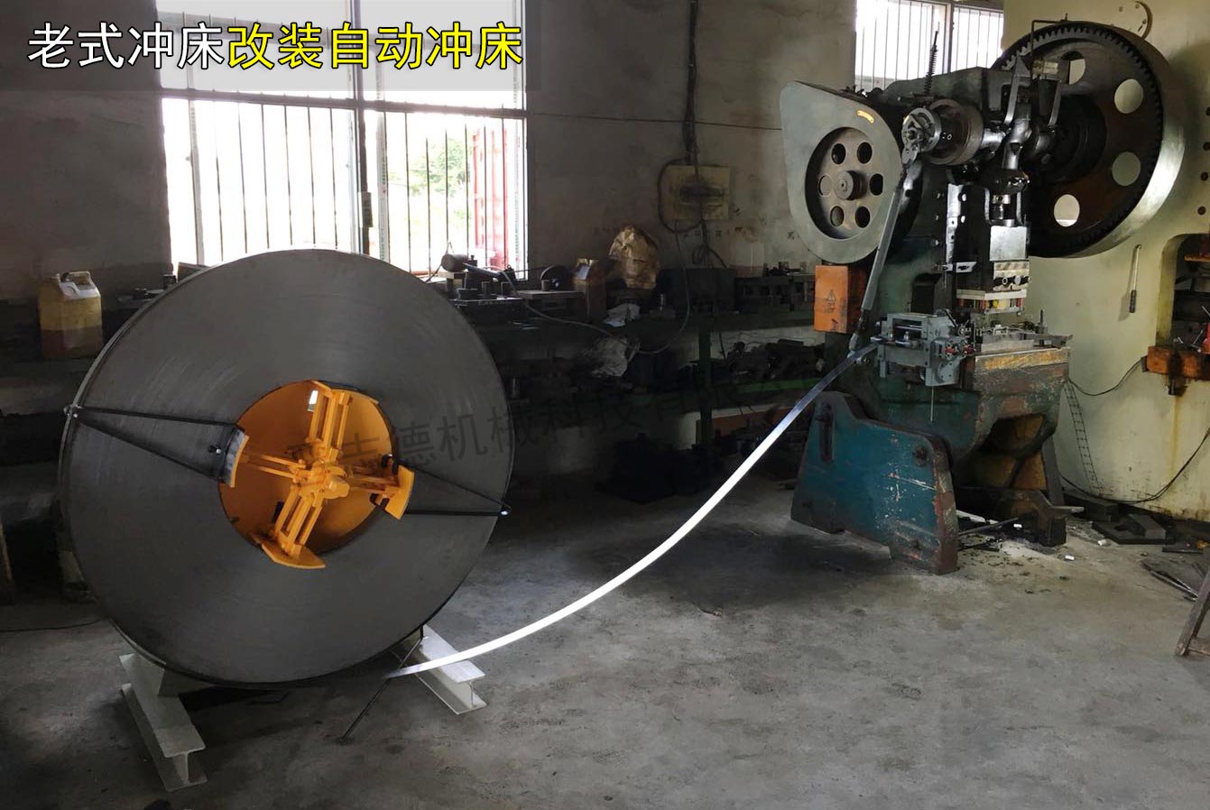 一、重型材料架+滾輪送料機配老式沖床改裝自動沖床