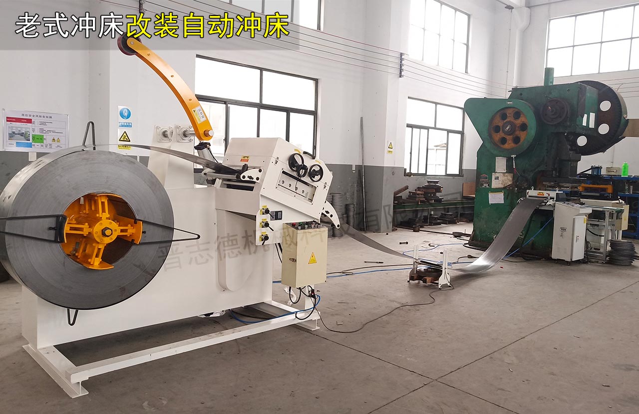 二、二合一料架兼整平機+NC伺服送料機配老式沖床改裝自動沖床