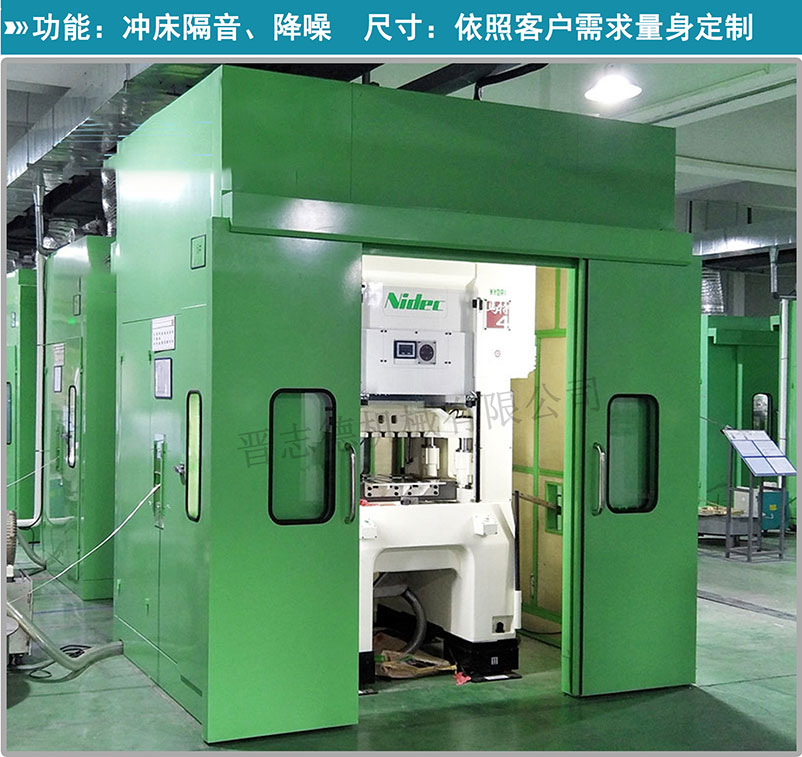 4、結(jié)構(gòu)緊密,體型較小,配合必要的檢修孔、通過(guò)孔、觀察窗以及移動(dòng)隔聲門等設(shè)施,可實(shí)現(xiàn)與沖床有機(jī)的融為一體,確保整體外觀效果的整潔、美觀。