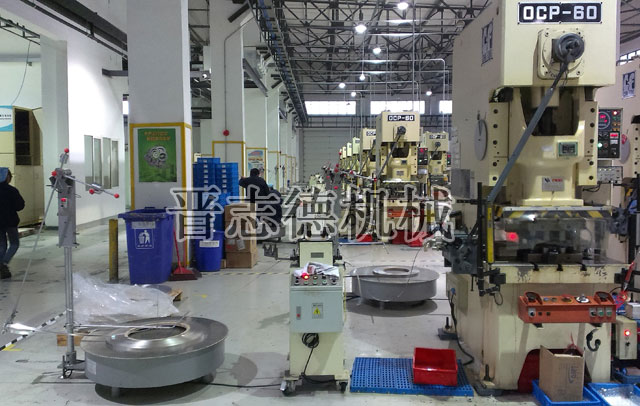 目前沖壓行業(yè)中使用的放料架,依照放料方式的不同分為臥式材料架與立式材料架兩種,其中臥式材料架只有一種,就是我們常說(shuō)的平面電子送料機(jī)(又稱(chēng)圓盤(pán)送料機(jī)),它采用平面載料盤(pán)進(jìn)行放料,不需漲縮,不受材料內(nèi)徑限制,其主要用于薄板料卷的高速開(kāi)卷,適用范圍不大,而實(shí)際使用多的仍是立式材料架。