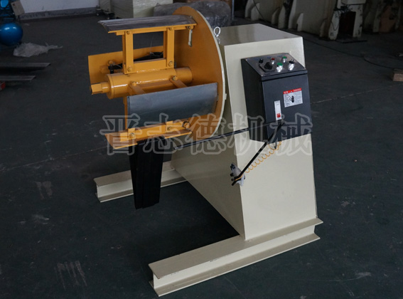 傳統的金屬板材為方便放置減少占地面積及空間等,通常將金屬板材制造成卷料,在使用時,需先采用材料架將卷料進行開卷展開,然后將展開后的金屬板材送入整平機整平后才能進行加工。重型材料架是沖壓生產中使用多的放料、開卷設備,它通過時間繼電器控制的料架出料速度的快慢,并通過感應支桿高低,來自動控制出料的長度,以實現和后續整平機同步加工,操作簡便,載重量大,自動化程度高,大的提高了沖壓生產效率。