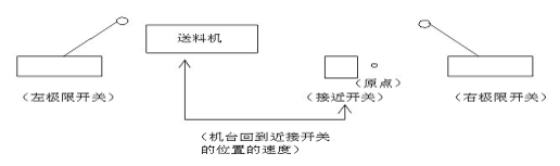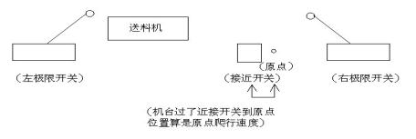 ?、僭谧笙揲_(kāi)關(guān)至原點(diǎn)之間機(jī)臺(tái)停止時(shí)沒(méi)有碰到左右限開(kāi)關(guān)時(shí)按下機(jī)械歸位將會(huì)回至初始位置注:必須是按過(guò)一次原點(diǎn)歸位之后機(jī)械歸位開(kāi)關(guān)才起作(所回到原點(diǎn)位置是偏擺初始位置設(shè)置的長(zhǎng)度即是原點(diǎn)位)。例圖: